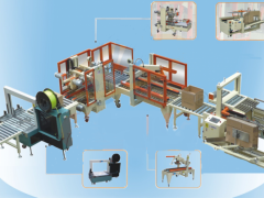 该设备为通过驱动装置带动物品转动,使物品通过本设备完成自动封箱